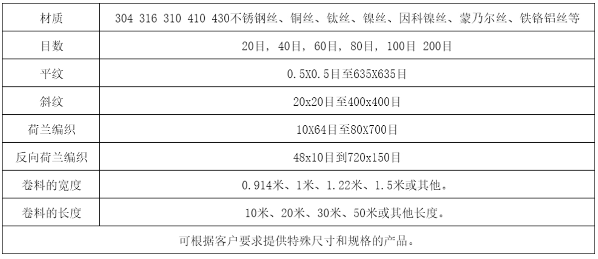 不(bù)鏽鋼絲網有(yǒu)幾種編織類型。編織類型是(sh♠&'ì)根據我們的(de)客戶,具體(tǐ)的(→★de)要(yào)求來(lái)确定的(de),如(rú)材料,絲徑,網眼的(α©φ≤de)大(dà)小(xiǎo),寬度和(hé)長(chán₩↕ ✔g)度。有(yǒu)四種編織方式,如(rú)平紋≈β£♣編織、斜紋編織、荷蘭平紋編織或荷蘭斜紋編織,平紋編織是(sh쀣)常用(yòng)的(de)編織方式。平紋編織可 ♥±(kě)以從(cóng)1X1mesh到(dào)635X635δ≥±目.荷蘭平紋編織可(kě)以從(cóng)10X64mesh到♦₽Ω(dào)80X700mesh斜紋編織可(kě)以從( "α♣cóng)20X250mesh到(dào)400X2800mesh。